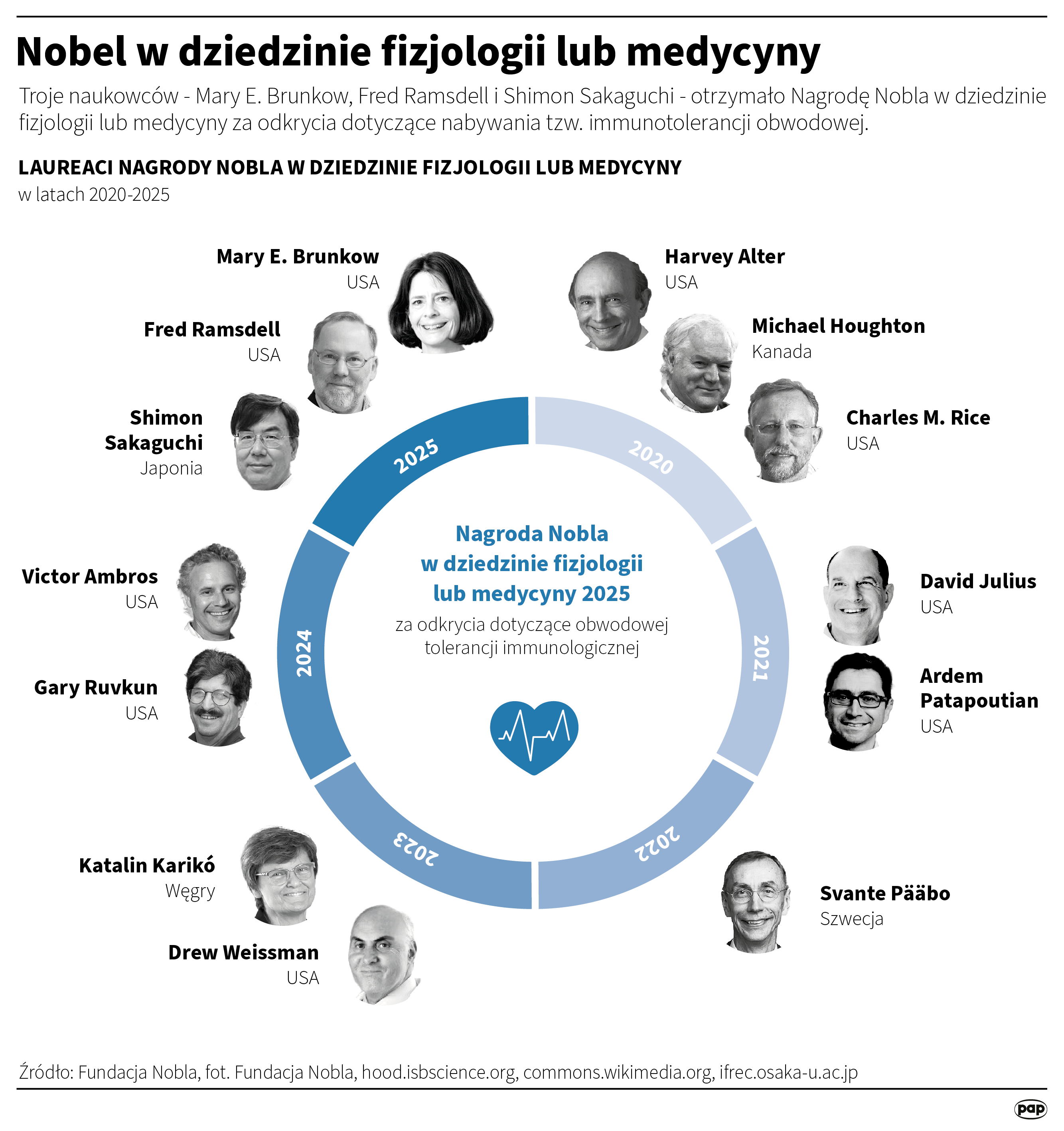 Tegoroczną Nagrodę Nobla w dziedzinie fizjologii i medycyny otrzymali Mary E. Brunkow i Fred Ramsdell z USA oraz Shimon Sakaguchi z Japonii. Dzięki odkryciu przez nich mechanizmów regulujących obwodowo odpowiedź immunologiczną można będzie skuteczniej leczyć choroby immunologiczne czy nowotwory.