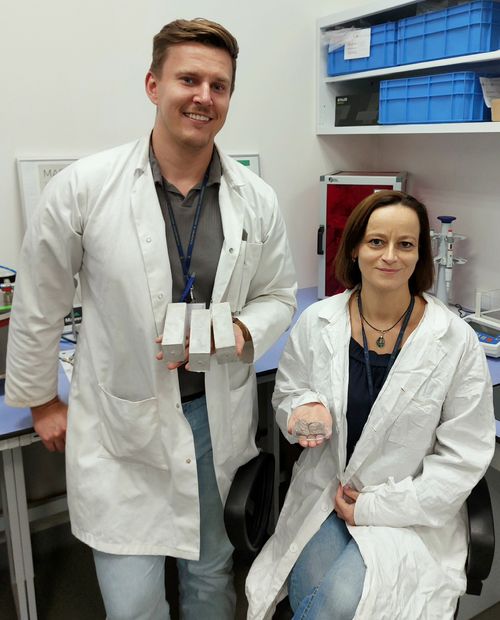 Jak wyjaśniono w komunikacie uczelni, materiał charakteryzuje się stabilnym i powtarzalnym składem mineralnym o stałych właściwościach, dzięki czemu może być bezpiecznie stosowany jako dodatek do materiałów budowlanych na bazie cementu. ISSA ma charakterystyczny, bogaty skład mineralny. Zawiera m.in. fazy węglanowe, krzemianowe i fosforanowe bogate w wapń, które mogą sprzyjać procesowi naturalnej karbonatyzacji – czyli uwęglanowieniu, twardnieniu wapna - reakcji chemicznej między kwasem węglowym a minerałami. Reakcja karbonatyzacji jest nieodzowna w utwardzaniu materiałów budowlanych zawierających wapno i cement, oraz dla osiągnięcia końcowej wytrzymałości.