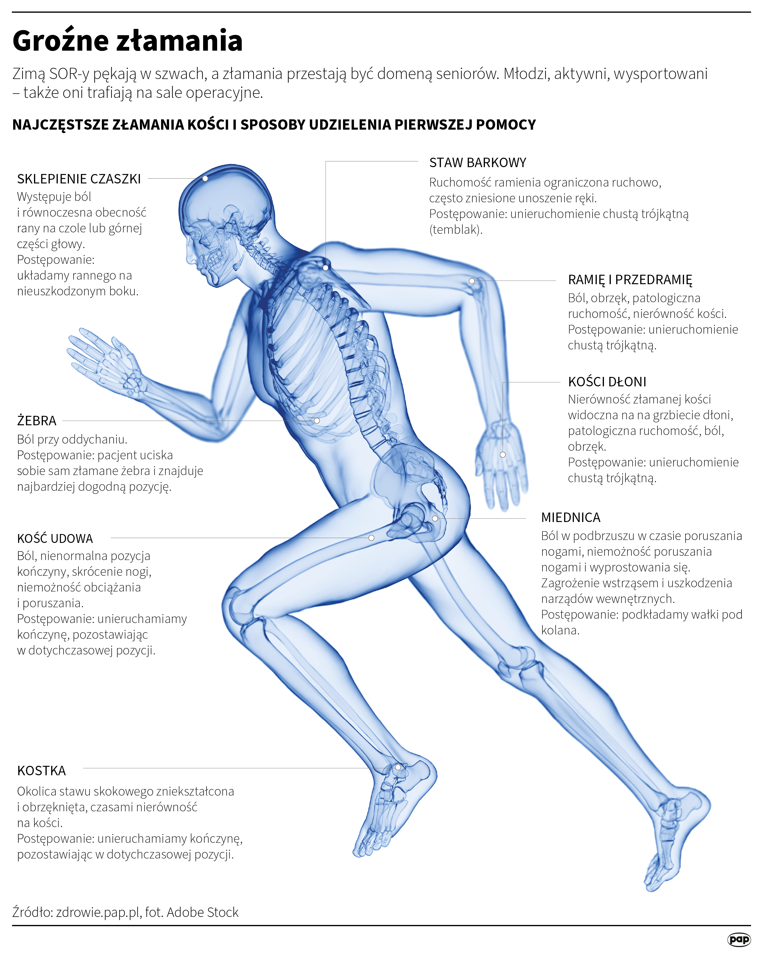 Zimą SOR-y notują wzrost liczby pacjentów z urazami, a złamania coraz częściej dotyczą osób młodych i aktywnych. – Sama zima nie jest winna. Problem zaczyna się, gdy funkcjonujemy tak, jakby było lato – powiedział PAP prof. Paweł Łęgosz z Warszawskiego Uniwersytetu Medycznego.