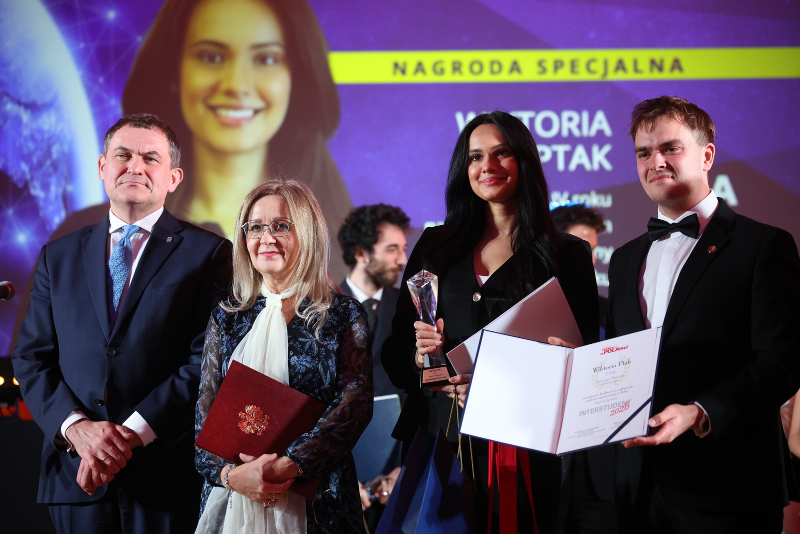 29.01.2026. Rektor UJ prof. Piotr Jedynak (L), dyrektor Departamentu Współpracy z Polonią i Polakami za Granicą MSZ Anna Sochańska (2L), przewodniczący Krajowej Reprezentacji Doktorantów Rafał Ramut (P) oraz laureatka nagrody specjalnej Wiktoria Ptak (2P) podczas gali nagród „Gwiazdy Umiędzynarodowienia 2026” i INTERSTUDENT 2026, 29 bm. w Kopalni Soli „Wieliczka”. Nagrody, przyznawane od 2018 roku, są przeznaczone dla osób mających wybitne osiągnięcia w działaniach na rzecz internacjonalizacji polskich szkół wyższych. (mr) PAP/Łukasz Gągulski29.01.2026. Laureat nagrody specjalnej Faith Pekcan podczas gali nagród „Gwiazdy Umiędzynarodowienia 2026” i INTERSTUDENT 2026, 29 bm. w Kopalni Soli „Wieliczka”. Nagrody, przyznawane od 2018 roku, są przeznaczone dla osób mających wybitne osiągnięcia w działaniach na rzecz internacjonalizacji polskich szkół wyższych. (mr) PAP/Łukasz Gągulski29.01.2026. Rektor UJ prof. Piotr Jedynak (2L), przewodnicząca Parlamentu Studentów RP Julia Bednarska-Leśniak (P), przewodniczący Krajowej Reprezentacji Doktorantów Rafał Ramut (2P) oraz laureat nagrody specjalnej Pascal Muam Mah (L) podczas gali nagród „Gwiazdy Umiędzynarodowienia 2026” i INTERSTUDENT 2026, 29 bm. w Kopalni Soli „Wieliczka”. Nagrody, przyznawane od 2018 roku, są przeznaczone dla osób mających wybitne osiągnięcia w działaniach na rzecz internacjonalizacji polskich szkół wyższych. (mr) PAP/Łukasz Gągulski
