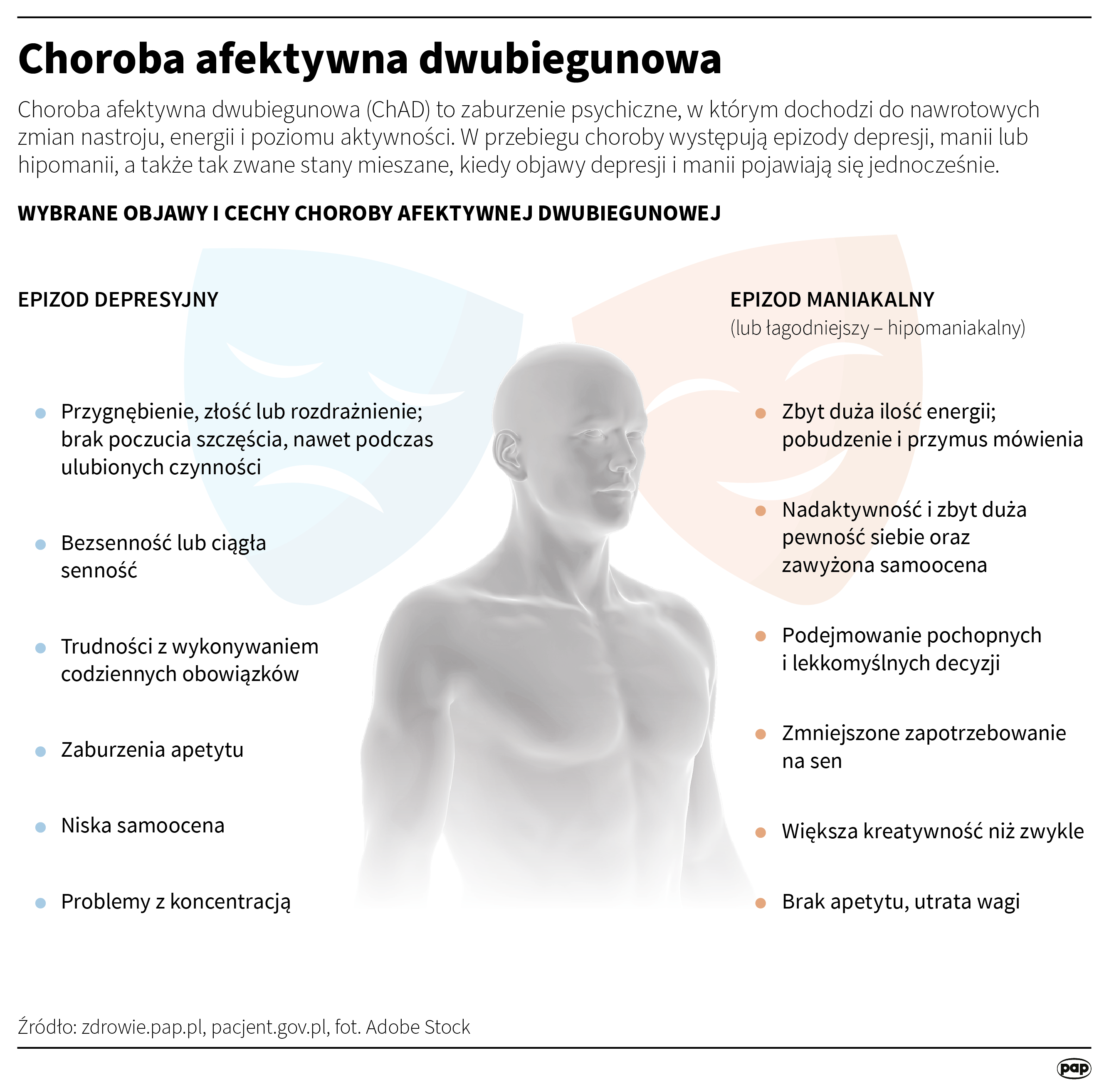 Mija 45 lat od wprowadzenia do oficjalnego nazewnictwa terminu „choroba afektywna dwubiegunowa”, który zastąpił stygmatyzujące określenie „psychoza maniakalno-depresyjna”. Zmiana miała podkreślać istotę choroby – naprzemienne występowanie biegunów nastroju – a nie sugerować „szaleństwo”.