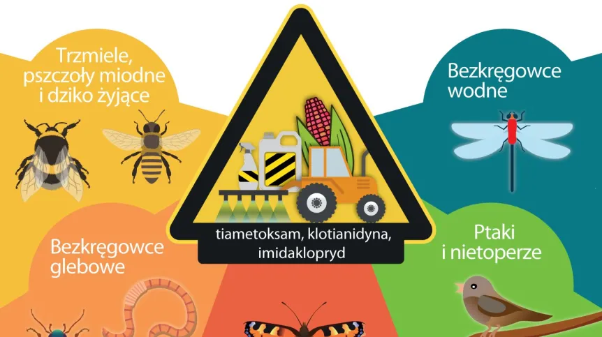 Eksperci stwierdzili też, że wspomniane pestycydy stanowią poważne zagrożenie m.in. dla pszczół miodnych, trzmieli i wodnych bezkręgowców, ale także oddziałują szkodliwie na inne organizmy, w tym ptaki. Jedynie ok. 5 proc. substancji czynnej preparatów neonikotynoidowych pobierana jest przez docelowe rośliny uprawne. Większa część rozprzestrzenia się po środowisku, np. przesiąka z pól do wód gruntowych i zbiorników wodnych, przemieszcza się z pyłami powstającymi podczas wysiewania nasion.